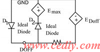 对应(4)式和(5)式的等效模型见(图6)。其中,非线性独立电压源EDOFF对应(4)式